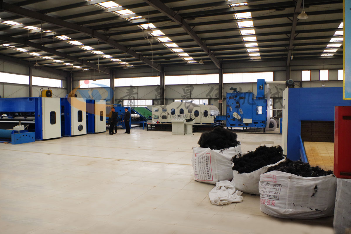 2. CWKS-開松機:各種不同纖維被放入水平輸送簾,經壓棉輥和對輥羅拉喂入,經高速打手開松后經輸棉風機以適量的風量輸送纖維原料供后道工作使用;并配備橋式除鐵裝備。開松效果好,不易纏棉,產量高。
