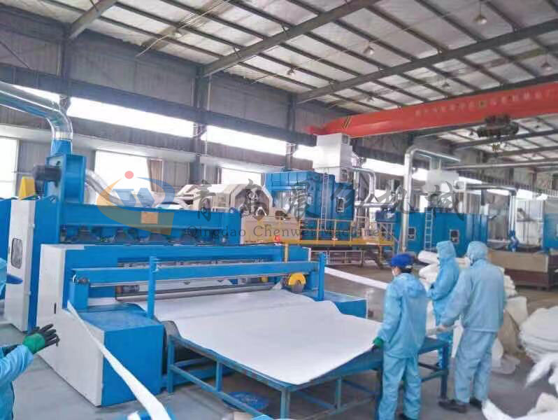 開包機(jī)-開松機(jī)-振動給棉機(jī)-梳理機(jī)-鋪網(wǎng)機(jī)-針刺機(jī)-成卷切片機(jī)