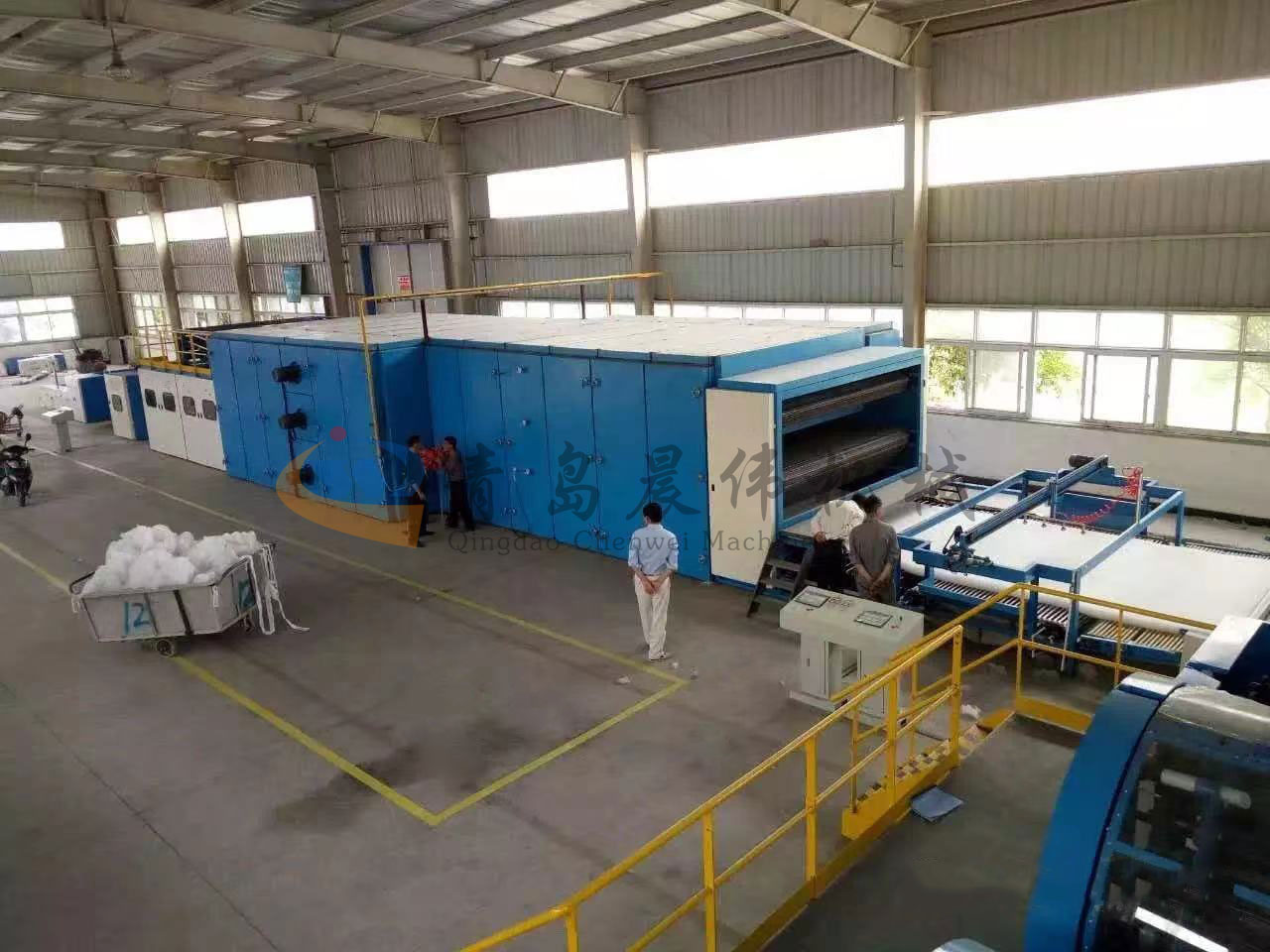 開包機-開松機-振動給棉機-梳理機-鋪網(wǎng)機-烘房-燙光機-成卷切片機