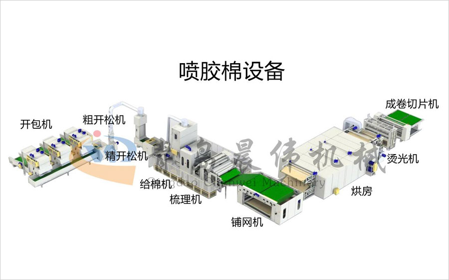 一、噴膠棉設備工藝流程: